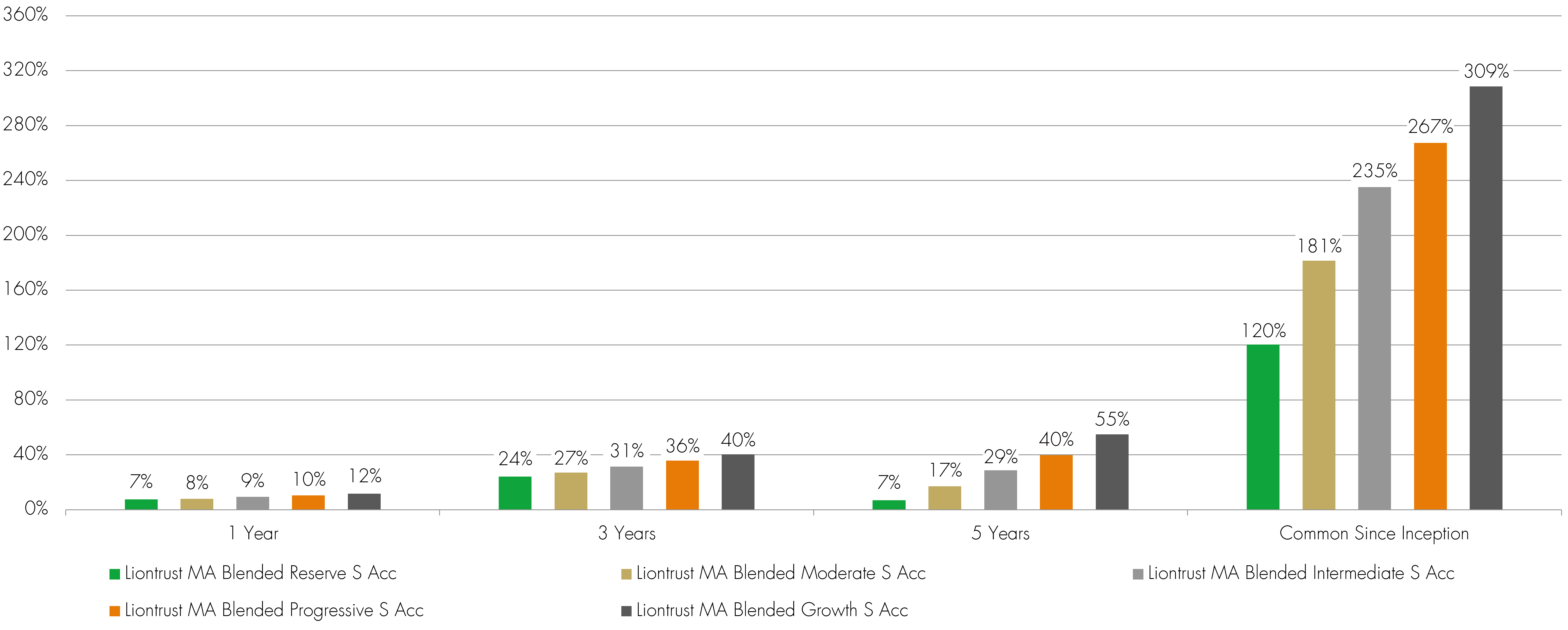 The Liontrust Multi-Asset Blended range comprises five funds that are designed to target the outcome expected by investors in terms of their level of risk, as measured by volatility, and maximise the return for each fund within the appropriate risk band. The higher the risk of the fund within the range, the greater the potential for volatility, positive returns on the upside and losses in down markets.