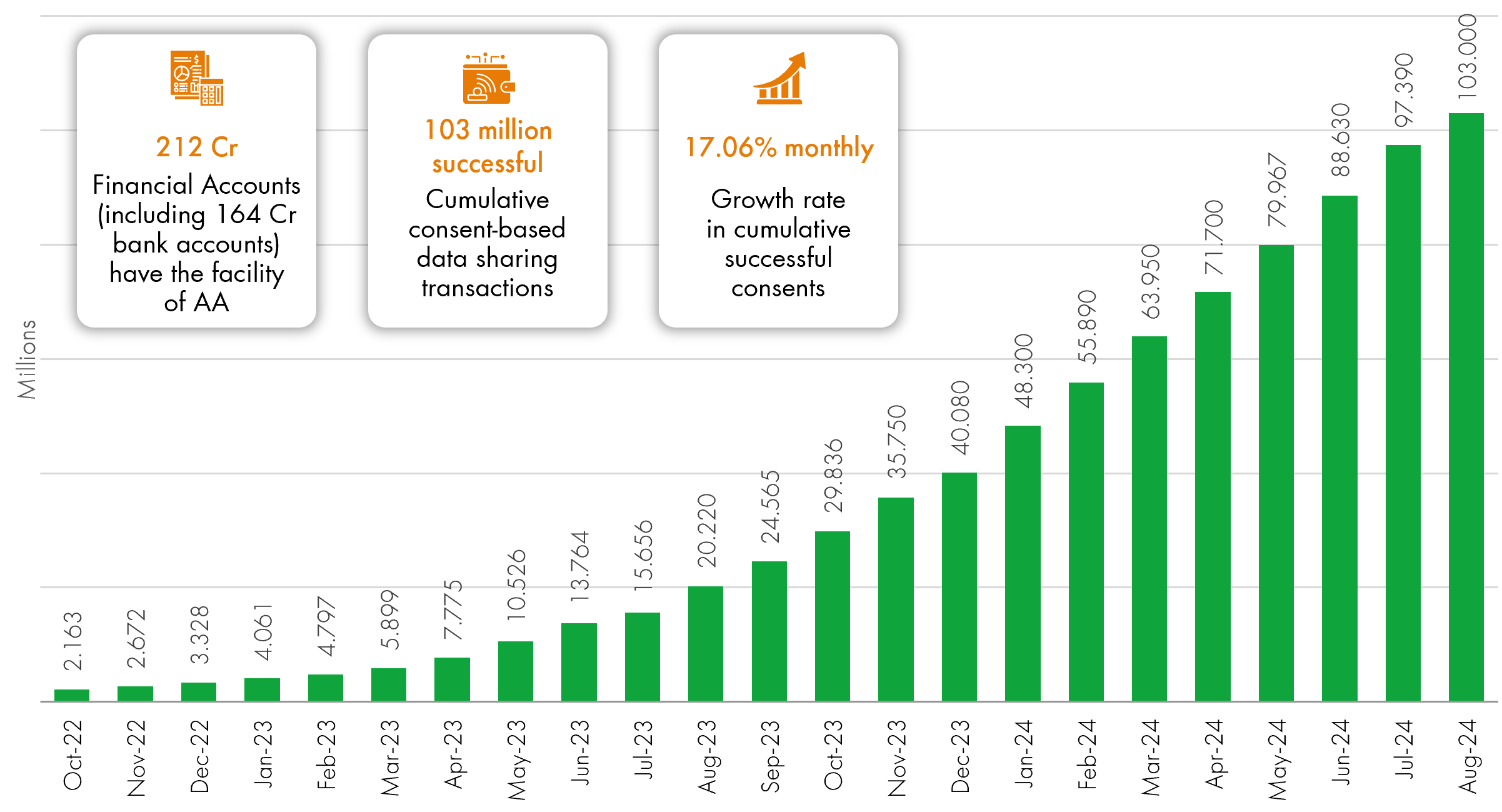 Source: Data, August 2024, India’s Account Aggregator Framework Crosses 100 million Consents in Three Years.