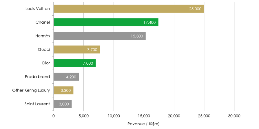 Key soft luxury brands by revenue 2024 - based on publicly report sales figures